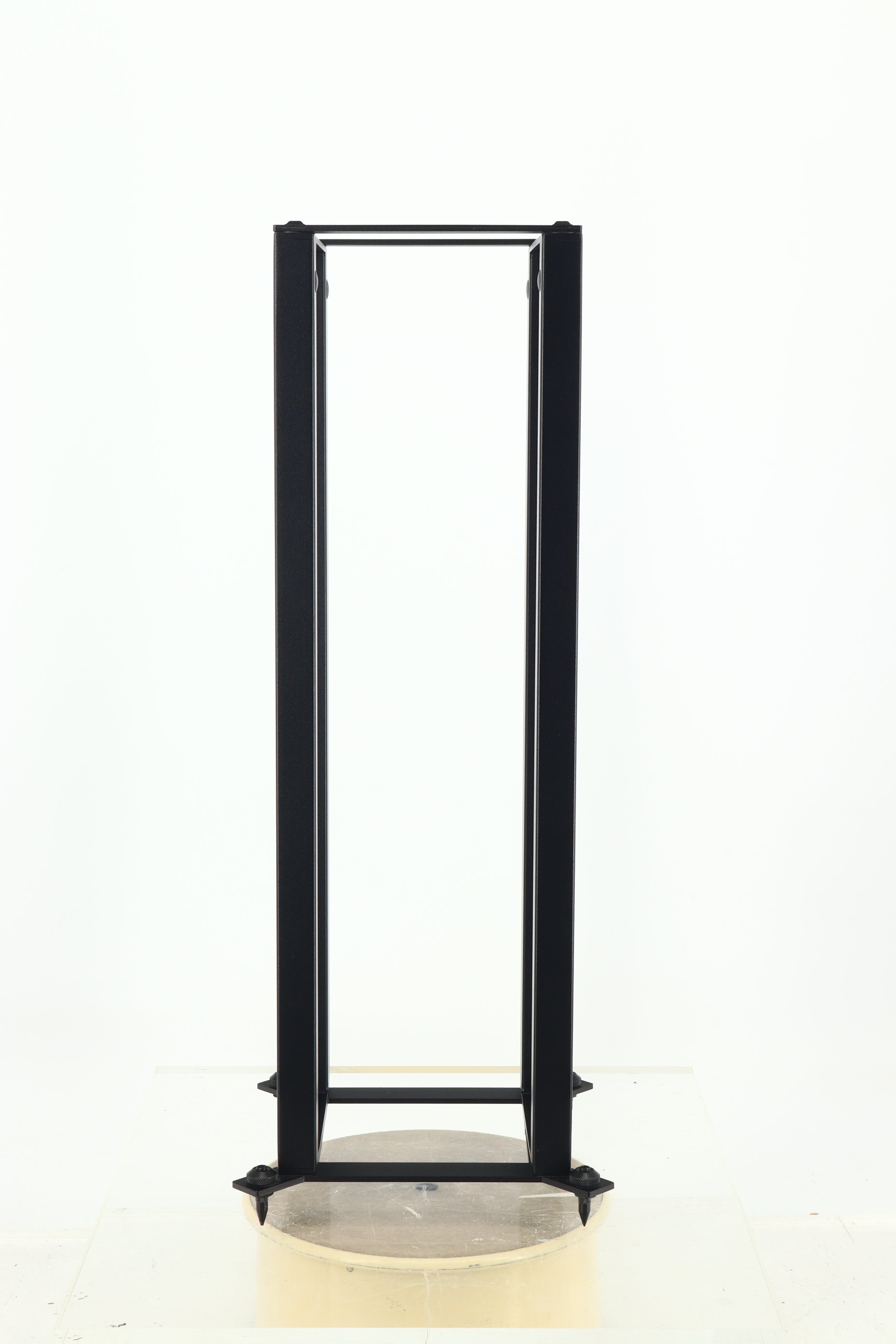 The QS 104 design includes, as standard the Custom Design unique 4mm Acoustic steel top plinth, the IDG (interface dampening gasket) and a 4mm laser precision cut base plate, M8 Nickle plated, Allen key adjustable base isolation spikes and when combined with the zinc plated M6 fixing bolts provides a total rigid open frame speaker stand support, designed to the minimal effect upon the performance of the speaker characteristics.