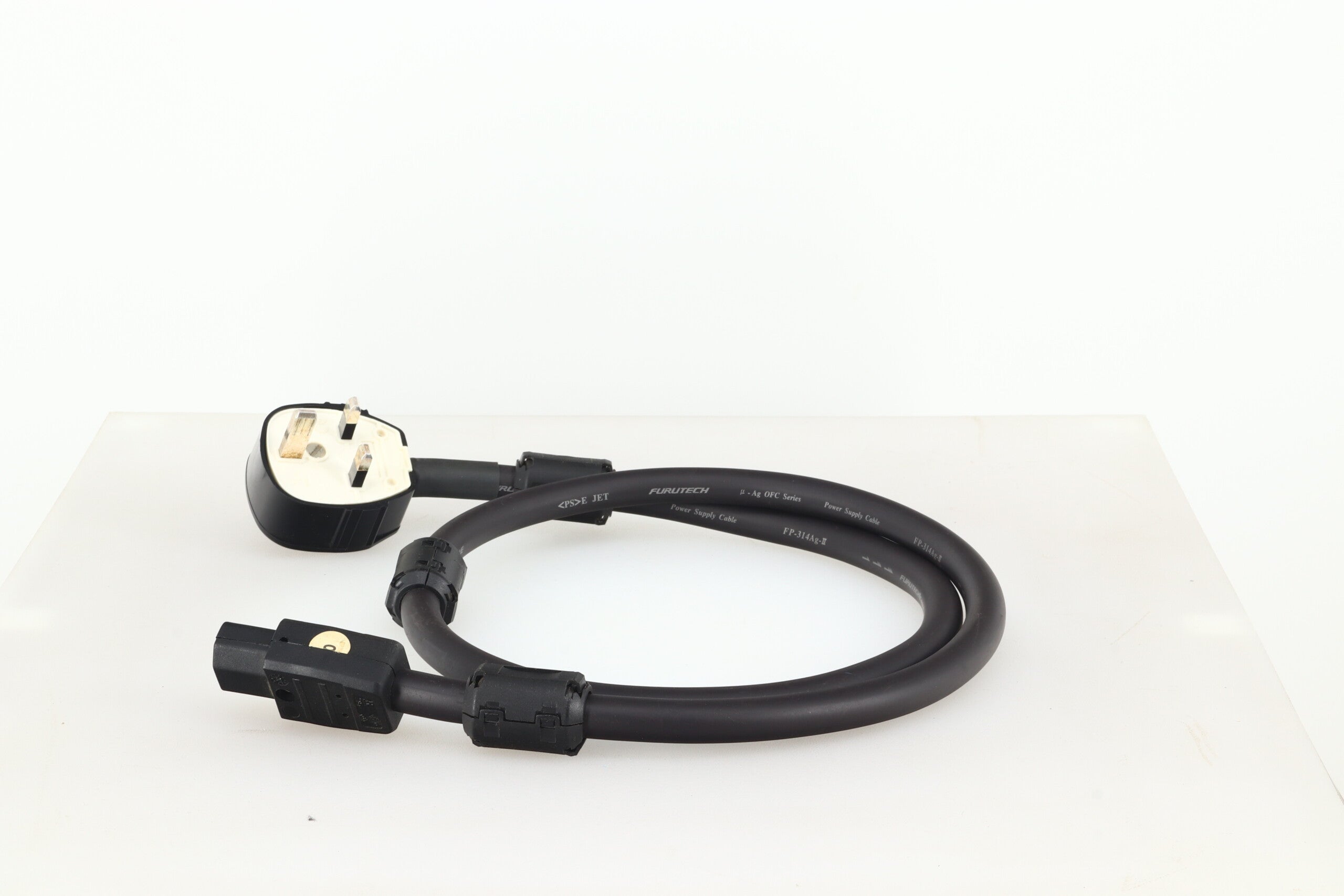 Here we have a good quality mains cable from Furutech. Our example of the FP-314Ag-II comes in good fully working condition and is fitted with a UK mains plug at one end and a “kettle” connector at the other.