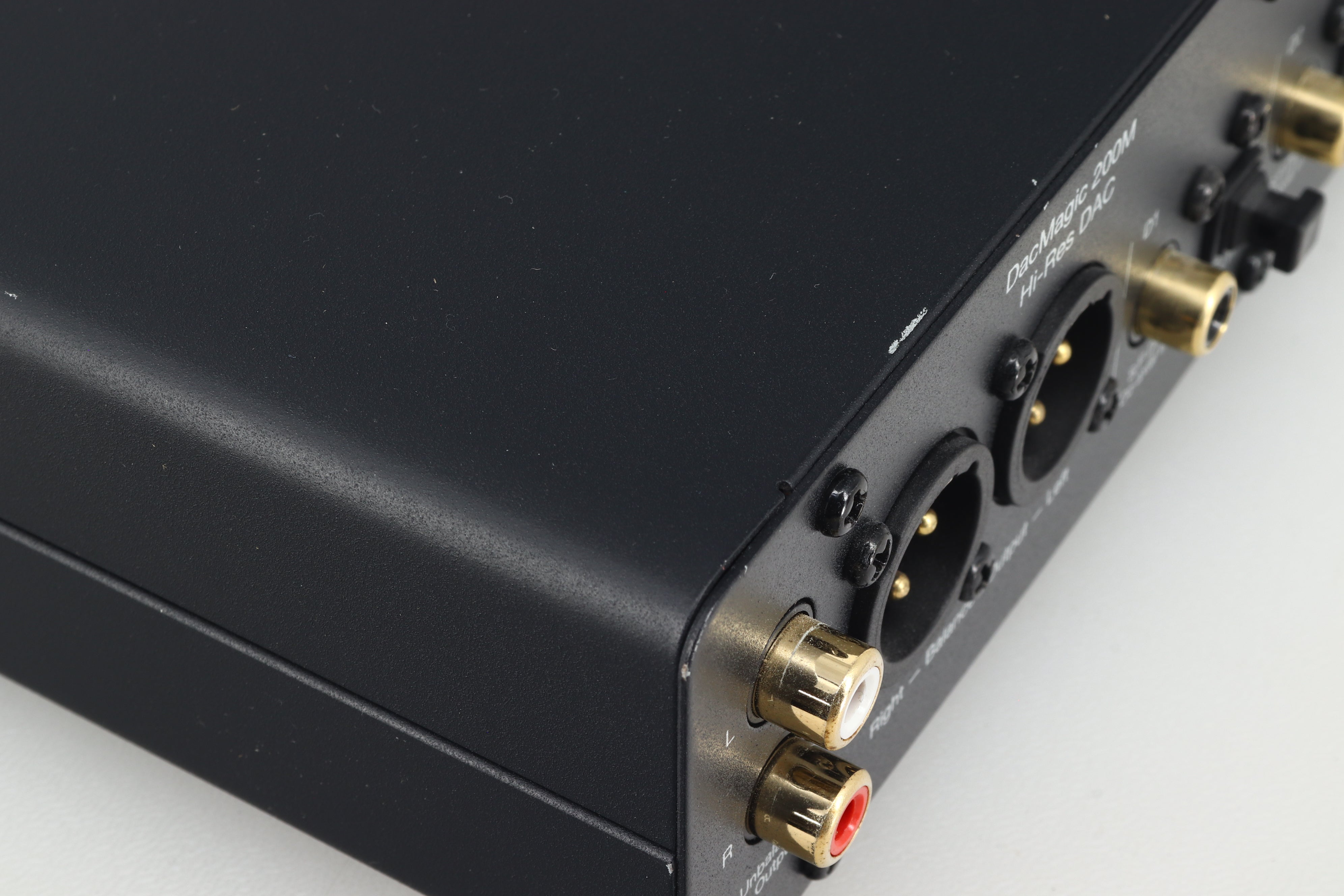DacMagic 200M’s aluminium fascia has a button to select one of 4 possible digital inputs, another to pick one of 3 digital filters to suit your listening taste, and a volume control if you’re using it as a headphone amp. There are LED lights to confirm your input and filter selection, with additional ones that indicate the incoming music resolution.