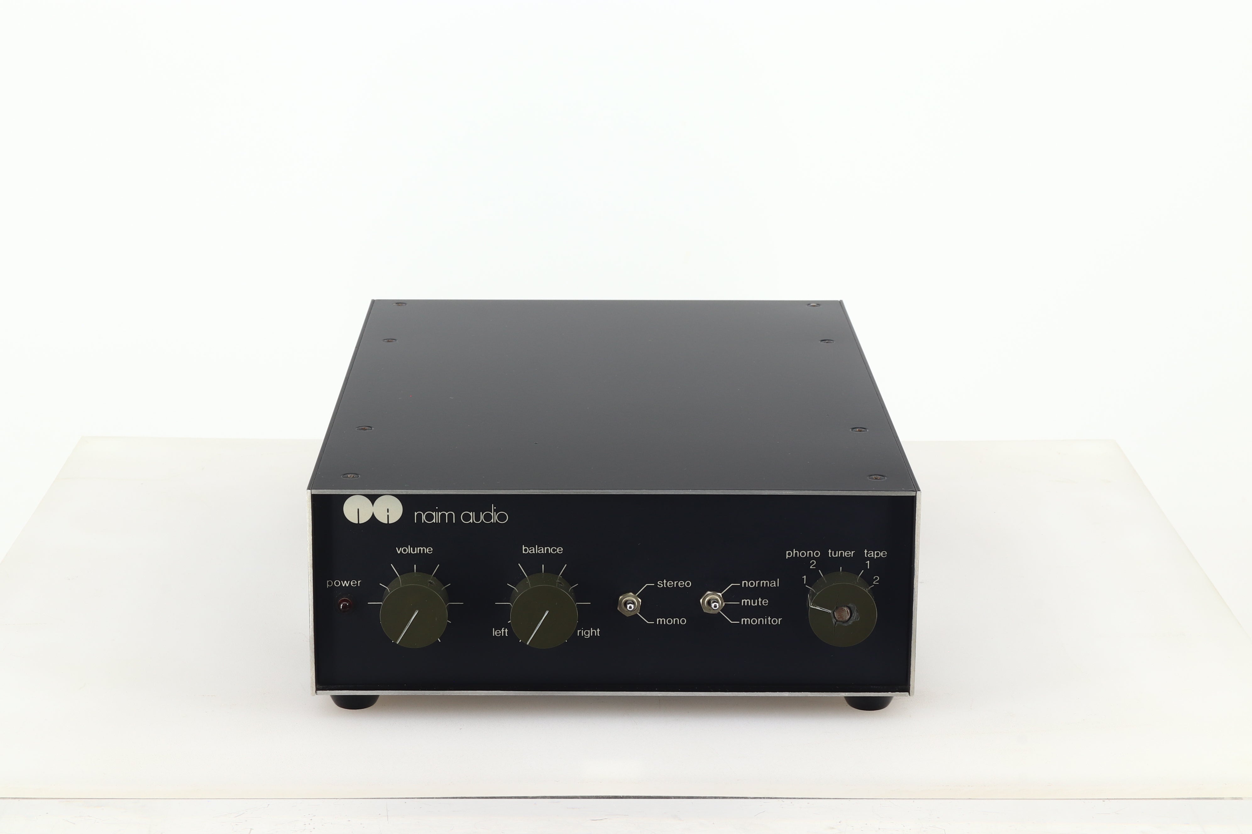 The NAC 32 stereo control unit is complex in terms of both facilities and electronic design. Facilities consist of volume and balance controls, and selector for two phono, one tuner and two tape inputs. The tape sockets have input/output connections, and the tape monitor switch has a mute facility. Tape inputs are buffered and the outputs are fed from a 600 ohm source. The tape monitor facility is automatically switched between tape 1 and tape 2, with tape 1 having precedence.