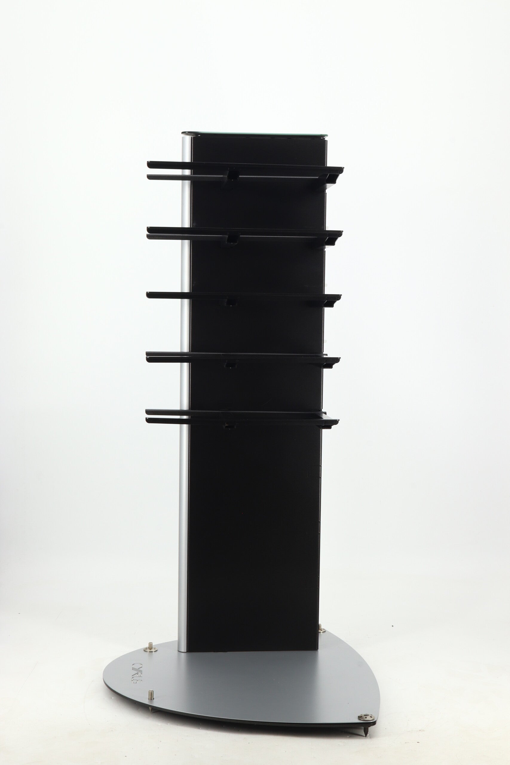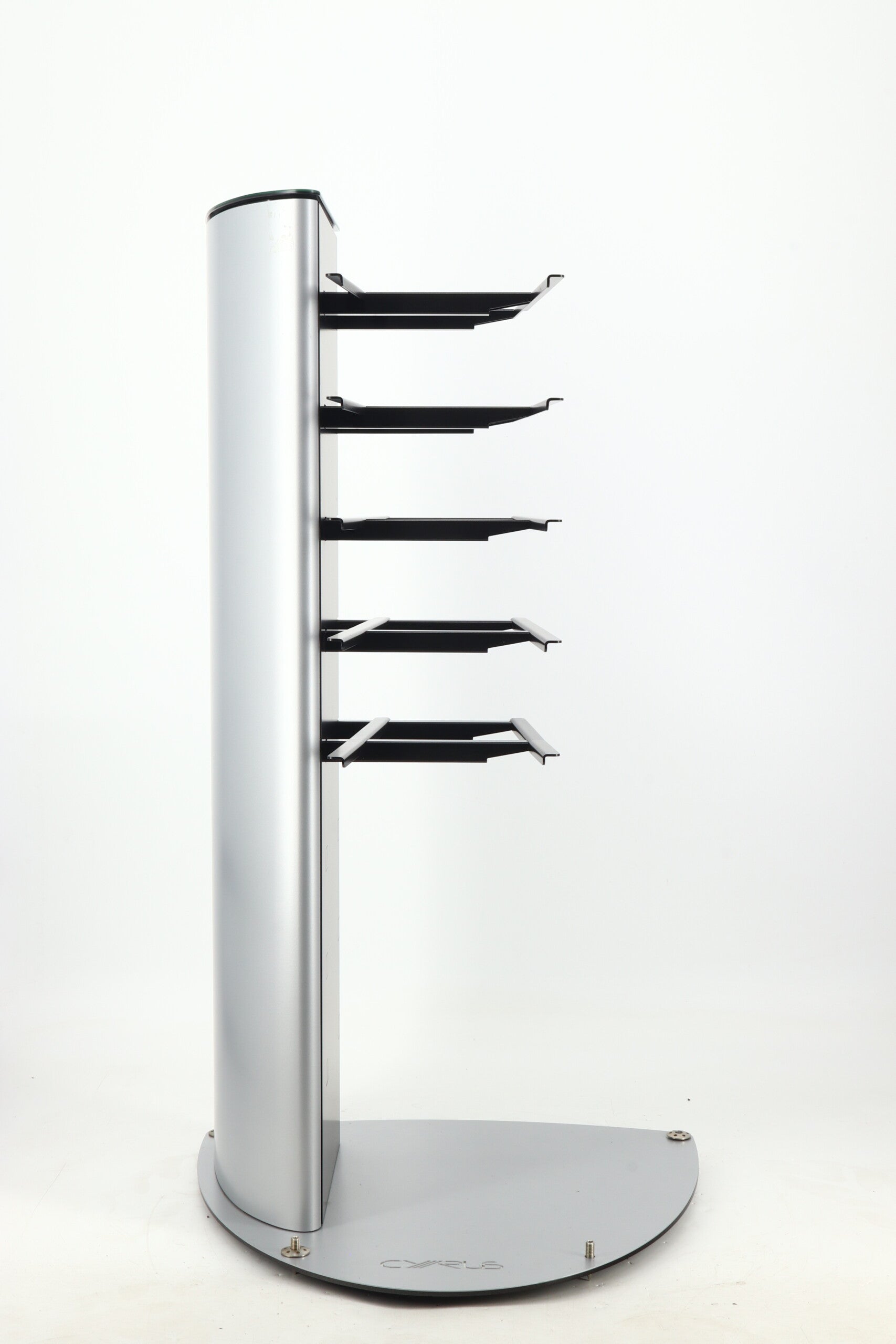 Made by extruding a massive vertical pillar of non-ferrous aluminium, (all Cyrus design excludes magnetic (ferrous) metals for acoustic benefit), a series of vertically arranged die-cast shelves are hung from the mast. The effect is a dramatic tower of beautifully painted audio components seemingly hanging in the air! A huge benefit of the HARK is that the mast is hollow allowing all the cables to be hidden away completely. For an even more dramatic effect the mast can be fixed to a wall and the entry and exit cables channelled away through the wall.