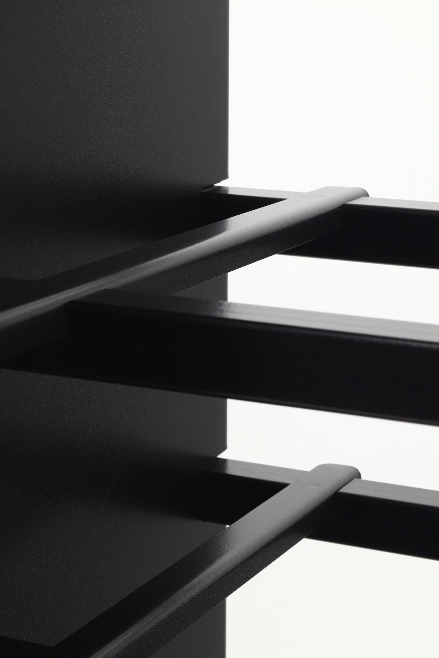 Finish: Silver finish for spine, matt black shelves