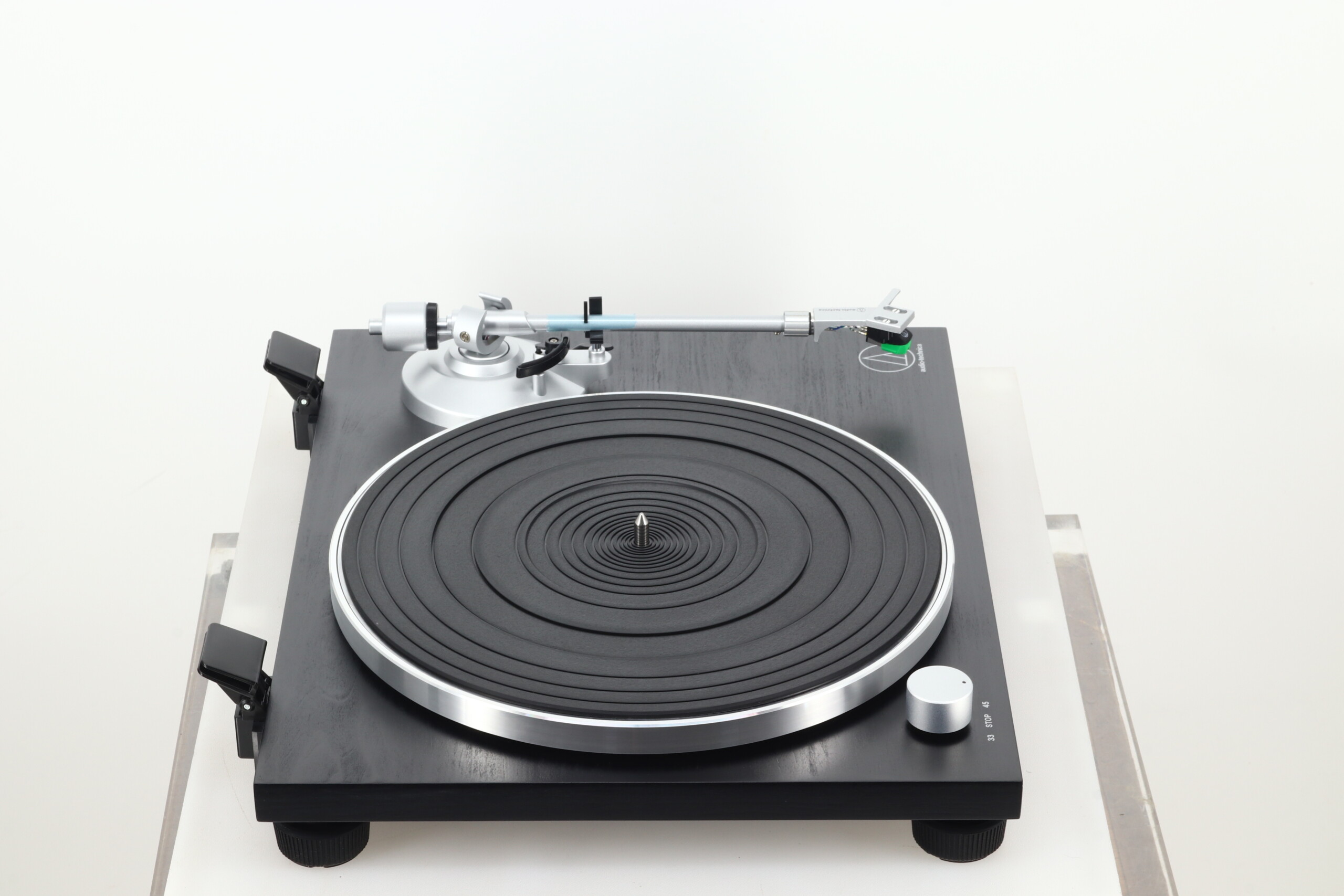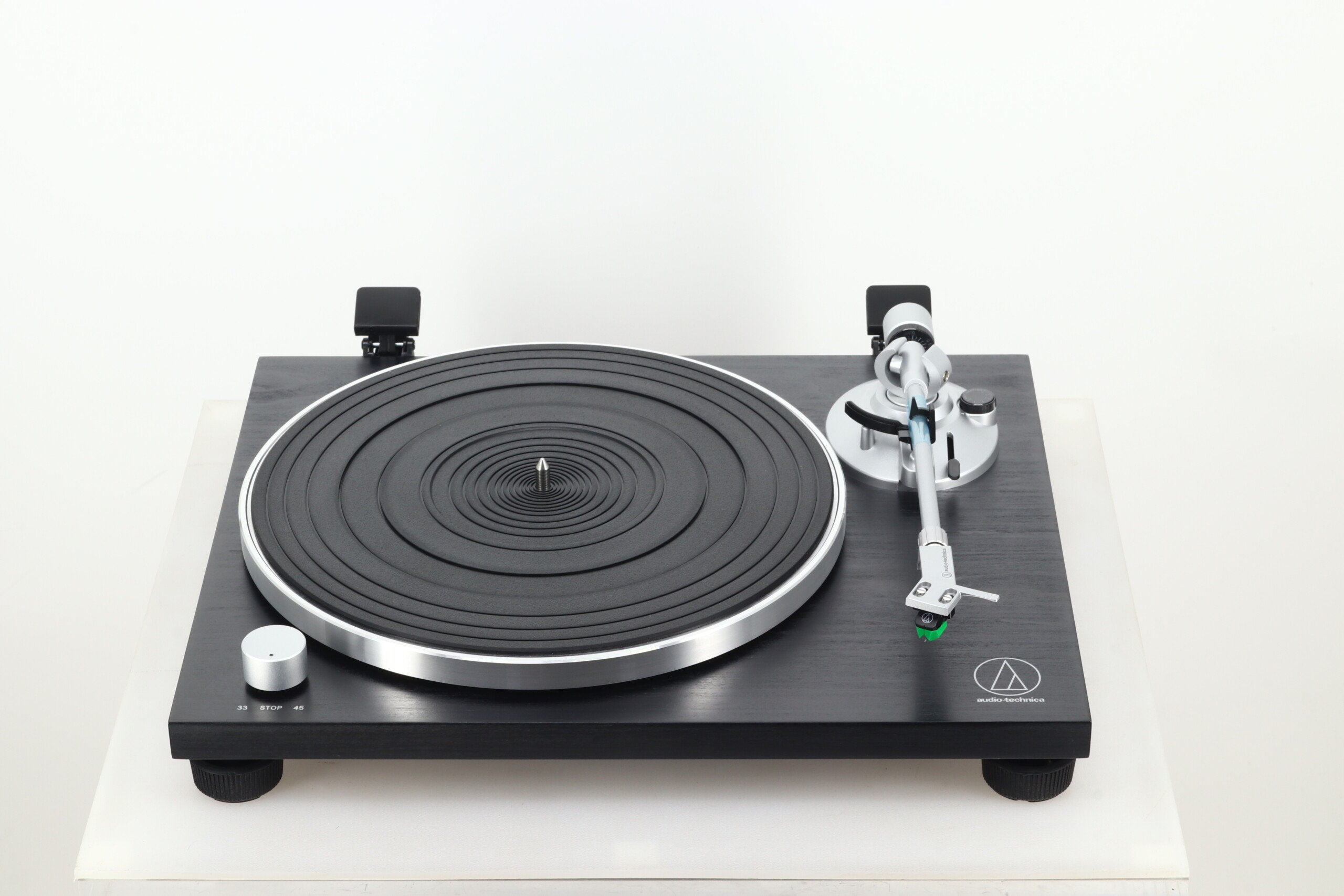 Fully manual, belt-drive operation with two speeds: 33.3 and 45 RPM