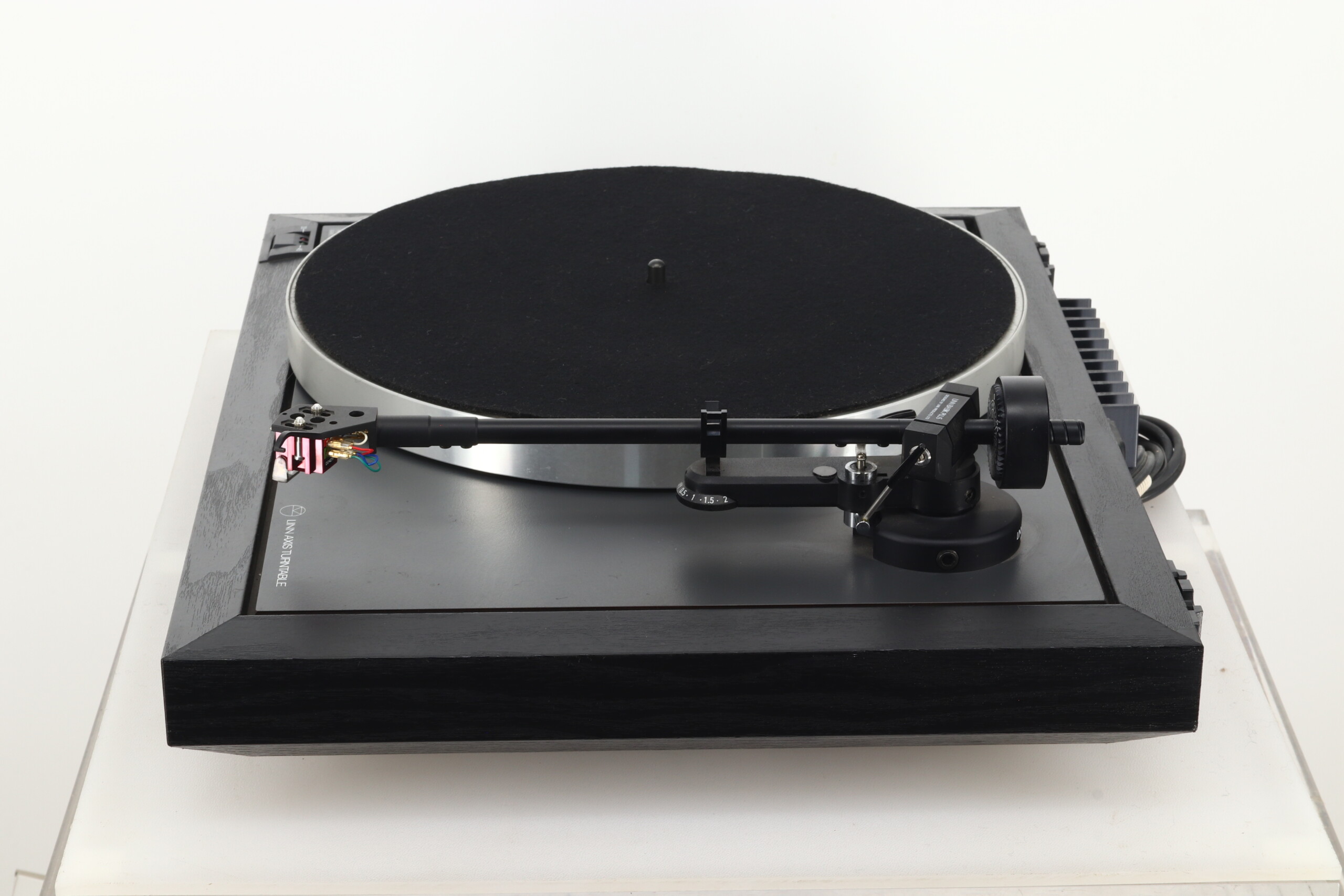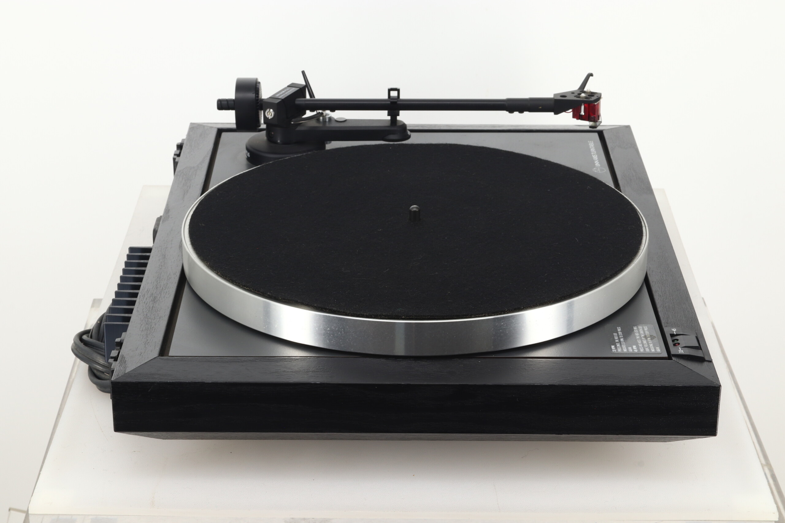 Motor Power Supply: Linn-designed 2-speed electronic ‘Class A’ power supply incorporating a stall detect circuit. This monitors the load on the motor from start-up and reduced the power supply to the motor once the correct speed has been achieved. It will also increase the power to the motor as