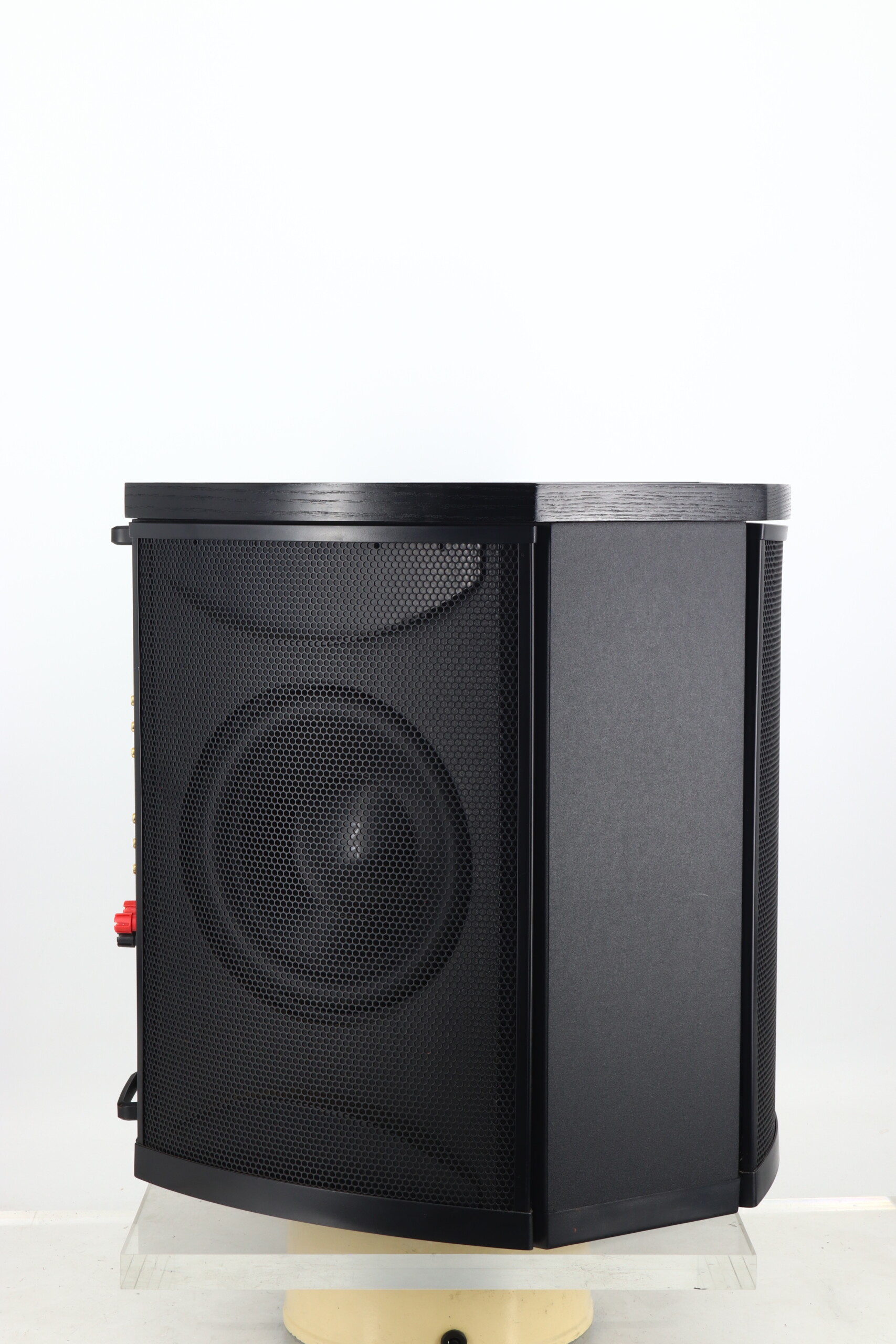 Low Frequency Transducer: Three 10″ (25.4cm) high excursion, aluminum cone with extended throw drive assembly, sealed non-resonant asymmetrical chamber format