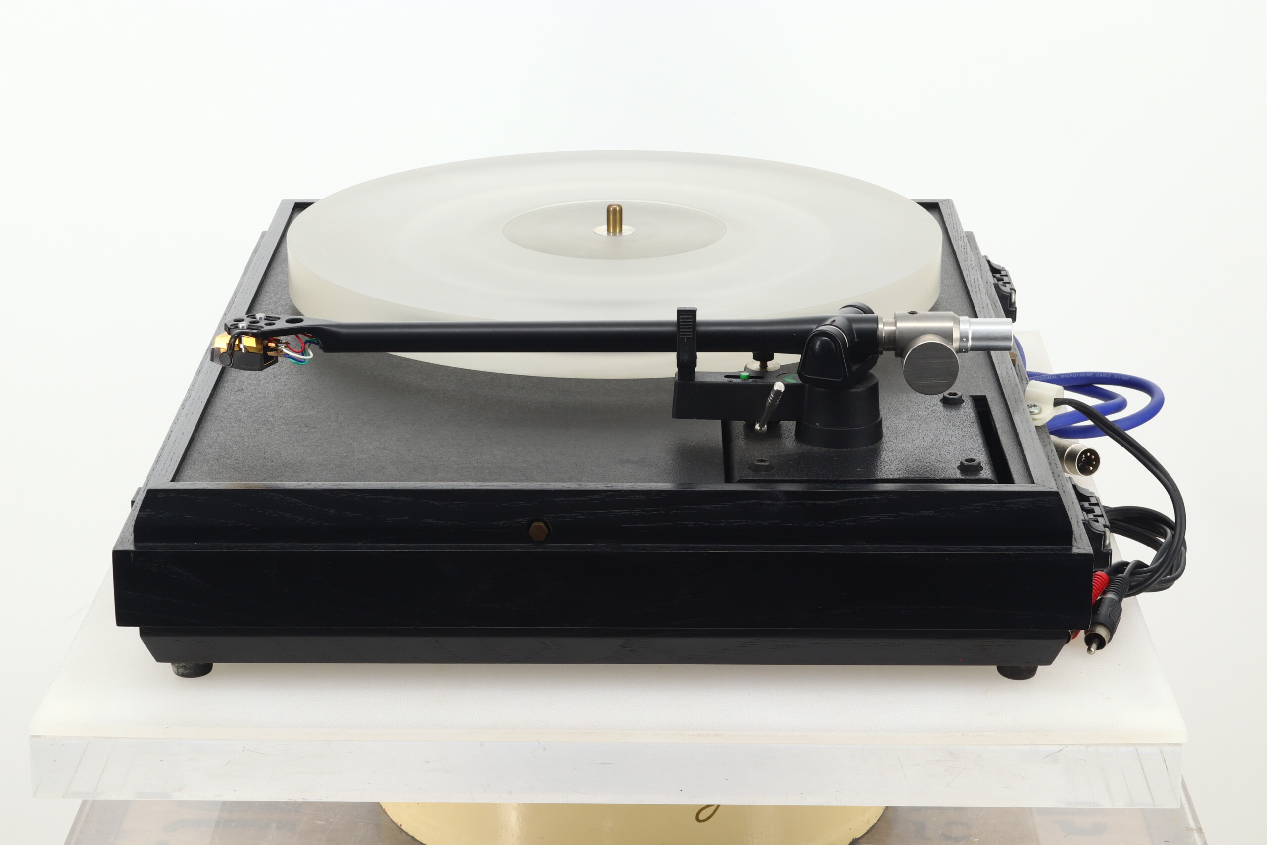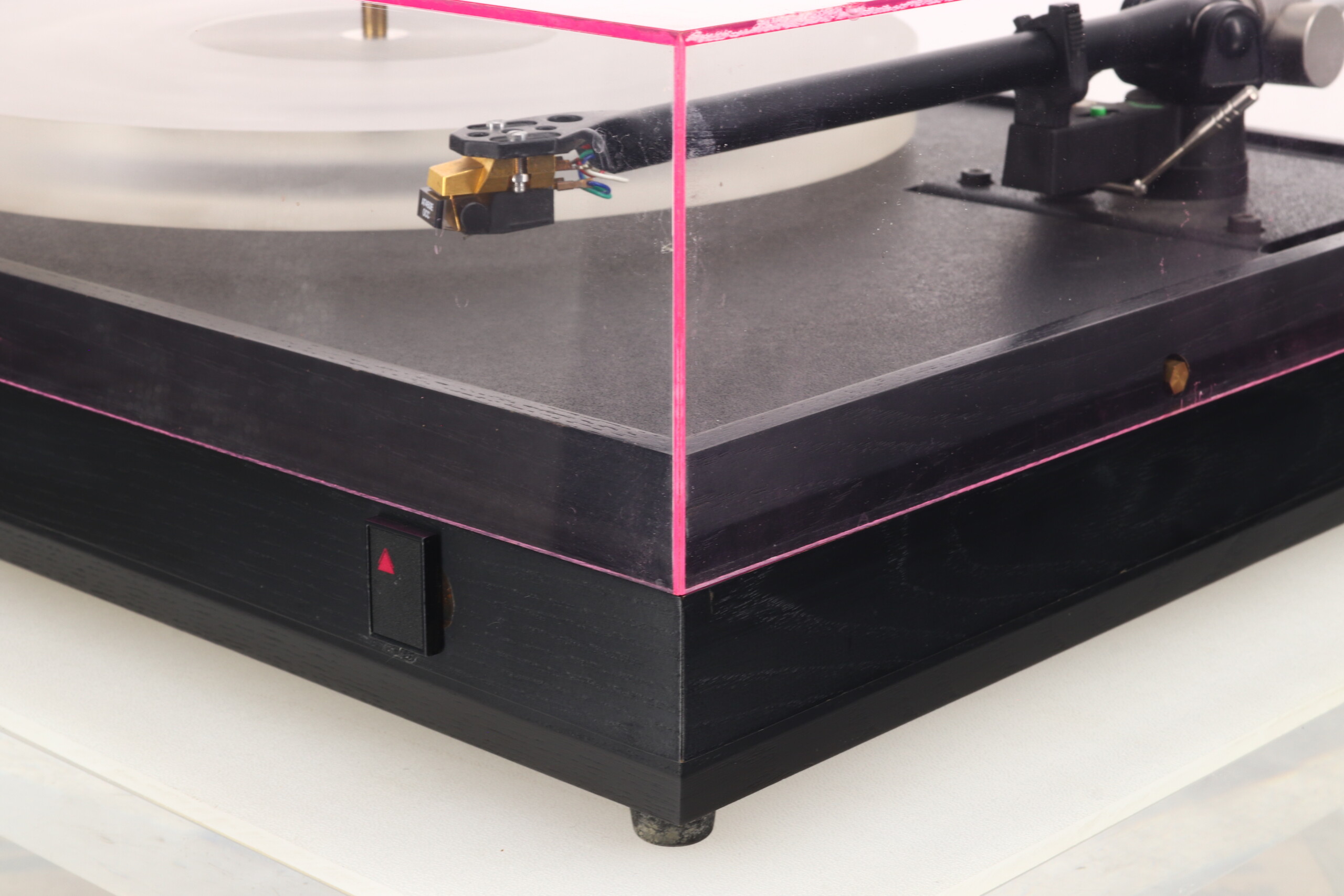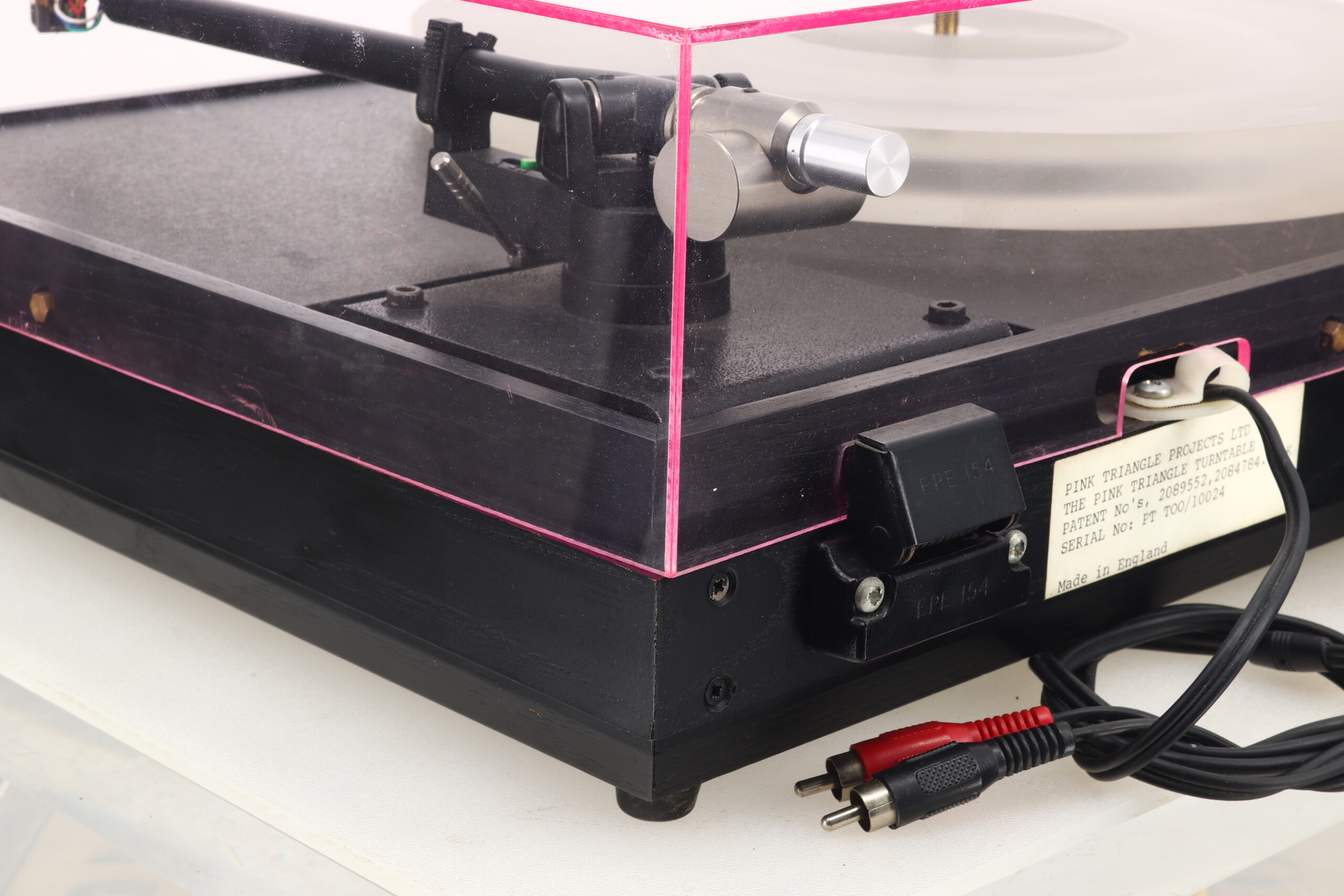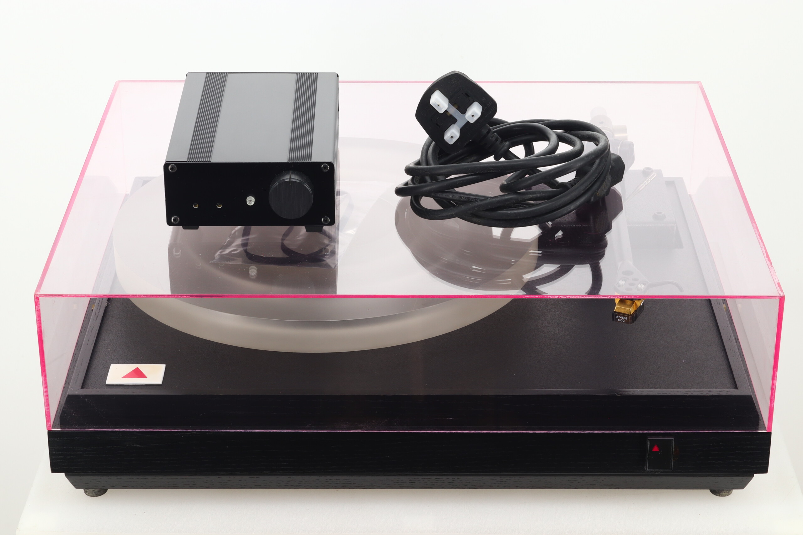 Here we have a classic mid-eighties, award winning Pink Triangle PT TOO turntable with its then unique acrylic platter. It is supplied with a Moth RB250 tonearm which has been upgraded with a Michell TecnoWeight, and an Audio Technica AT450E Cartridge. Regularly recommended by the Hi-Fi press and noted for its use of lightweight materials throughout the suspension and platter along with a high quality inverted bearing design. This combination also features an aftermarket separate power supply, comes in good fully working condition and will be professionally packaged. It will of course be covered by our standard three month warranty, but please note this does not include the fitted cartridge.