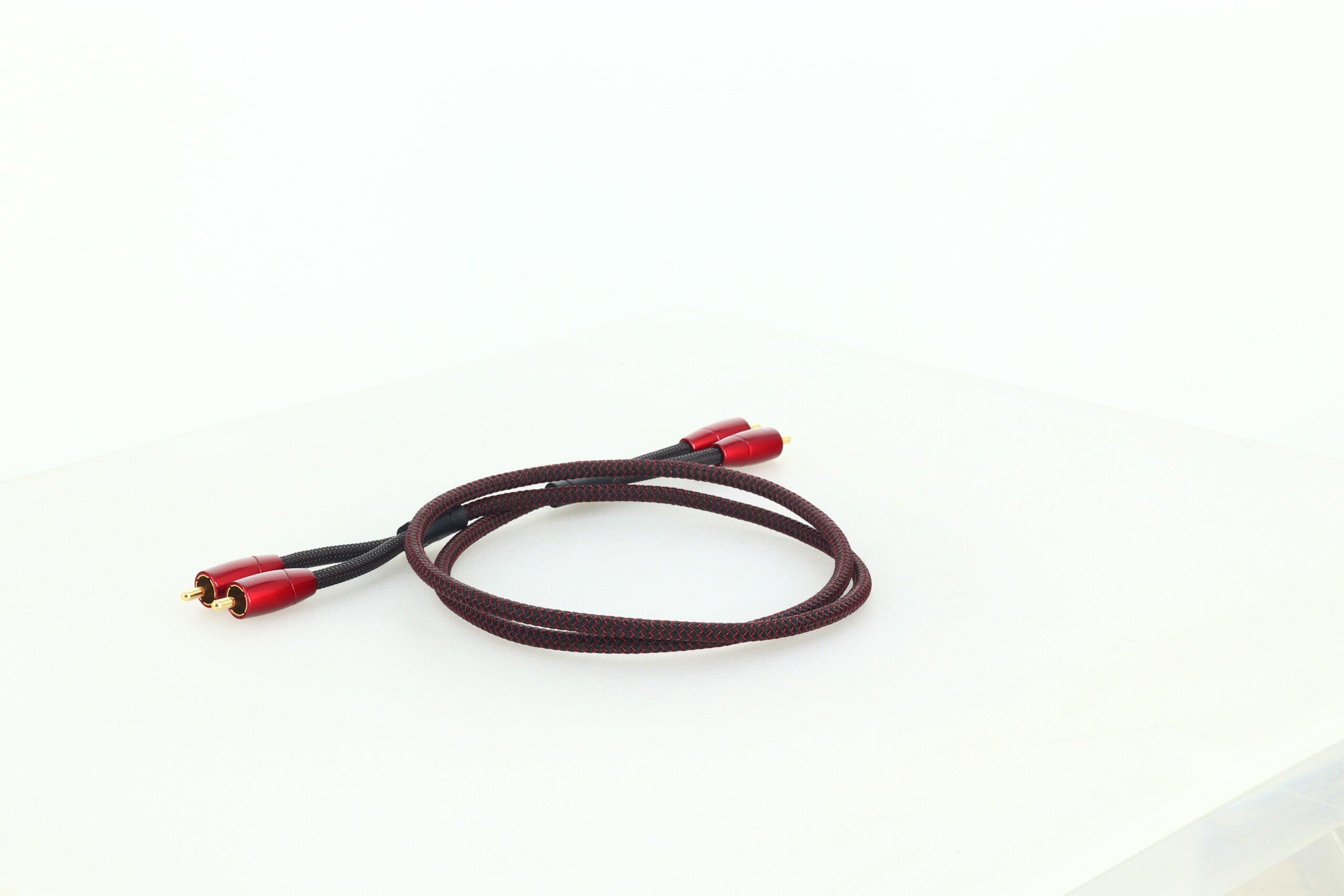 Any solid material adjacent to a conductor is actually part of an imperfect circuit. Wire insulation and circuit board materials all absorb energy (loss). Some of this energy is stored and then released as distortion. Golden Gate uses air-filled Foamed-Polyethylene Insulation on both conductors because air absorbs next to no energy and Polyethylene is low-loss and has a benign distortion profile. Thanks to all the air in Foamed-PE, it causes much less of the out-of-focus effect common to other materials.