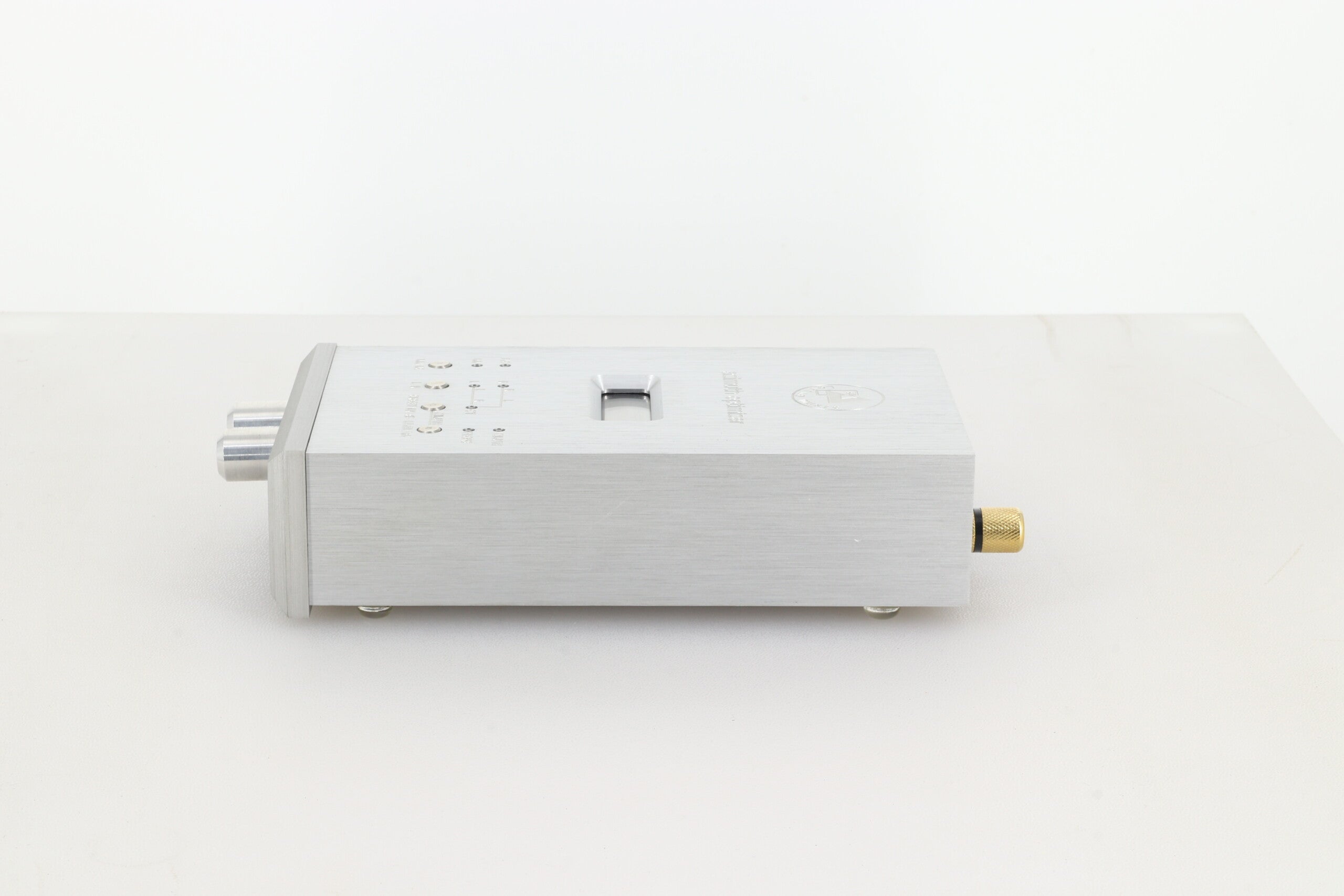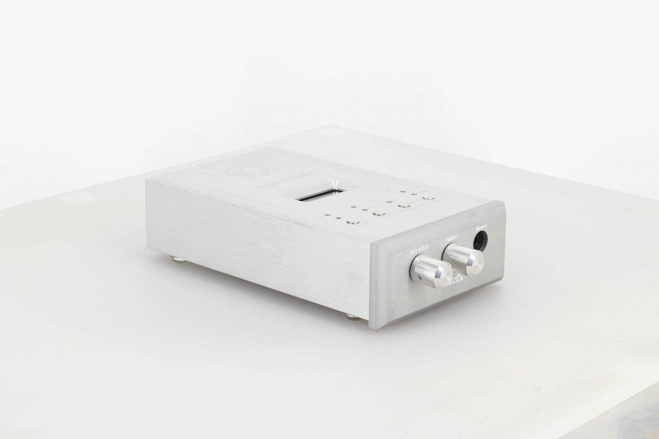 The Azimuth Optimizer is a precision measurement unit that for the first time makes it possible to exactly align the azimuth of the cartridge diamond (stylus) position. The stylus azimuth (the vertical position of the cartridge's diamond when viewed from the front) is the main influence on channel balance, frequency response and stereo separation of a stereo phono cartridge. Visual adjustment of azimuth is not accurate enough to ensure perfect stylus alignment. Exact azimuth can only be determined when using a precision measuring instrument such as the Clearaudio Azimuth Optimizer. Furthermore a High-End phonostage is built in, so that the sonic effect of adjustment may be compared against the scientific measurement. An integrated headphone amplifier makes mobile use of the Azimuth Optimizer possible. Any headphones with an impedance of between 100 ohms and 600 ohms can be used.